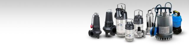Complete program in sewage and waste water pumps. For dewatering, drainage, industrial waste water, mud, slurry, cellars etc. With and without automatic stop. Both cast iron and stainless steel models.